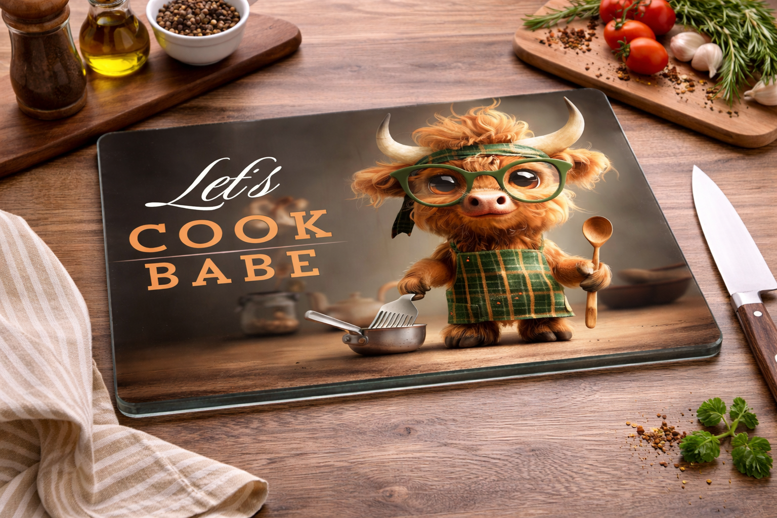 Add a touch of quirky country charm to your kitchen with our large Glass Worktop Savers / Cutting Boards. Measuring a generous 30cm x 39cm (approx. 12" x 15"), these boards are the perfect blend of fun art and daily practicality. Whether you are prepping meals or serving up a grazing platter, our Highland Cows will bring a smile to your face!